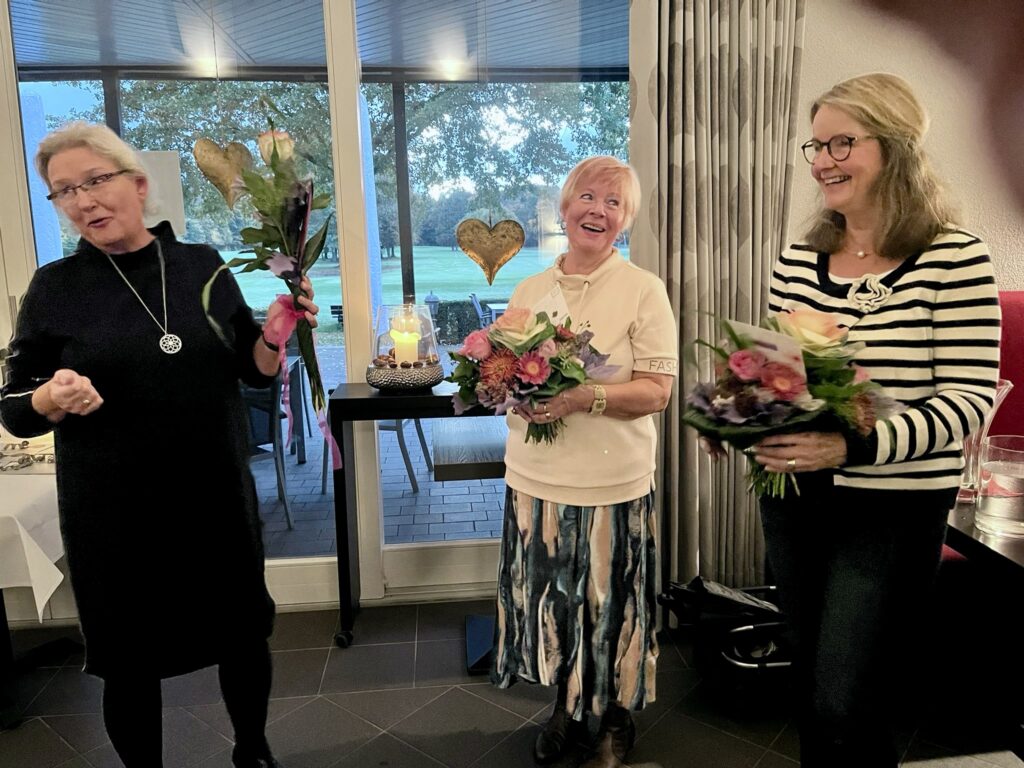 Über die wunderschönen Blumensträuße freuten sich Hanne, Elisabeth und Christiane sichtlich und bedankten sich bei allen Damen für das gute, vertrauensvolle Miteinander der vergangenen Saison.