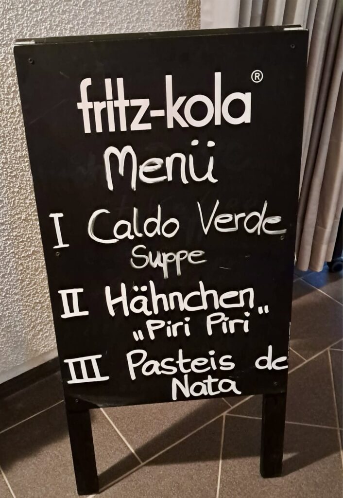 Zur Abendveranstaltung hatte unser Gastronom Joao mit seinem Team ein typisch portugiesisches 3 Gänge Menü gezaubert, dafür bedankten sich nach dem Essen alle mit einem Applaus beim gesamten Gastroteam.